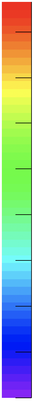 With this color map, structures within the [0.1, 0.2] and [0.3, 0.6] ranges are invisible. The rule should be that equal steps in data value should correspond to equal perceptual steps. The rainbow color map does not preserve intervals in data. The data are “interval”; the representation is “ordinal”.