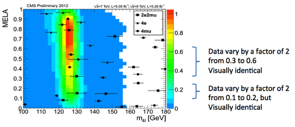 The rainbow is used a lot in High Energy Physics. On 2012, July 4th physics results showing the evidence of a new boson compatible with the Higgs boson signature were presented by the LHC experiments. Several plots using rainbow color maps were shown. On all of them the results were very clear, and were cross- checked by all kinds of other representations like bar charts or contour plots. Nevertheless we will see in this page how better color maps could have been used.