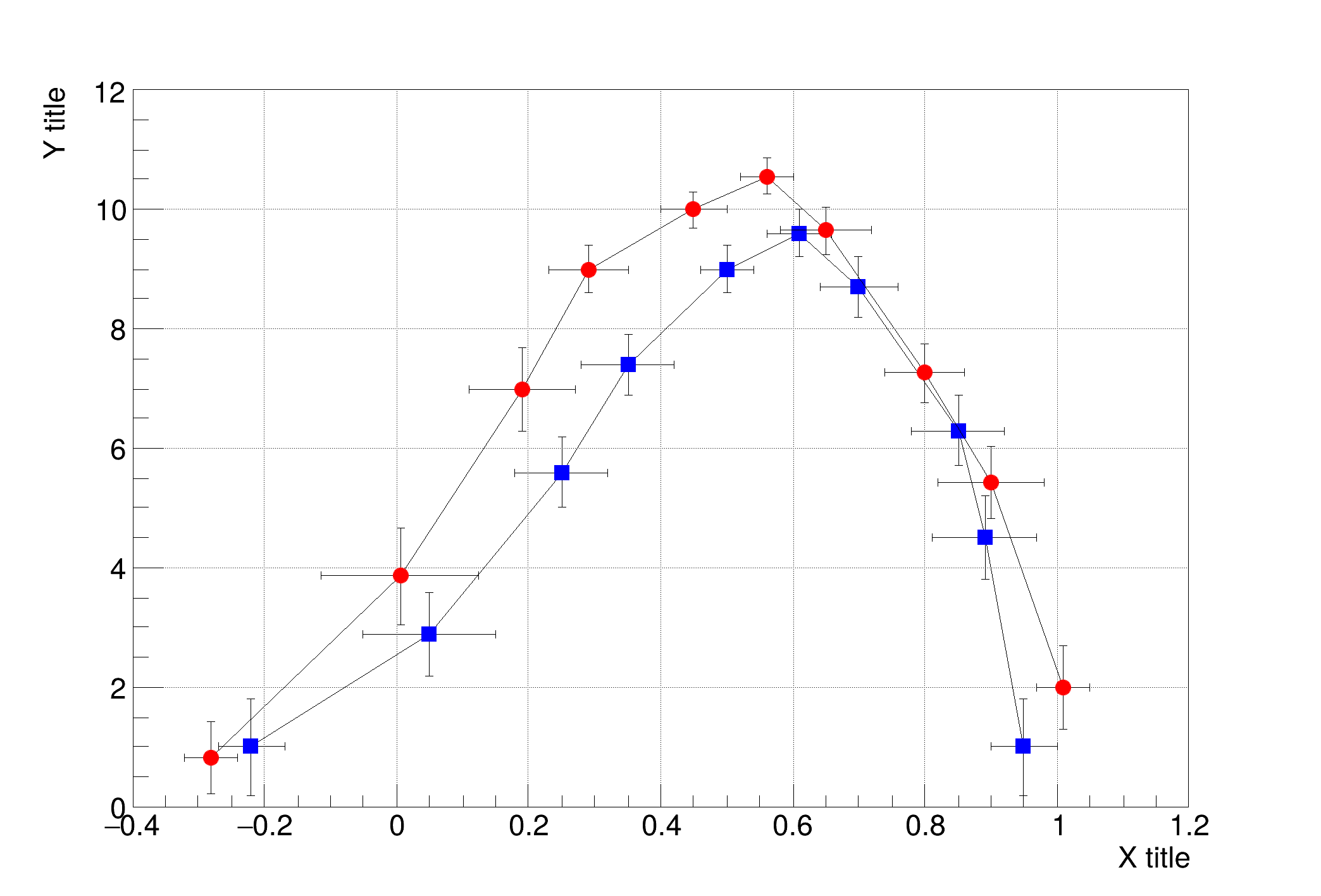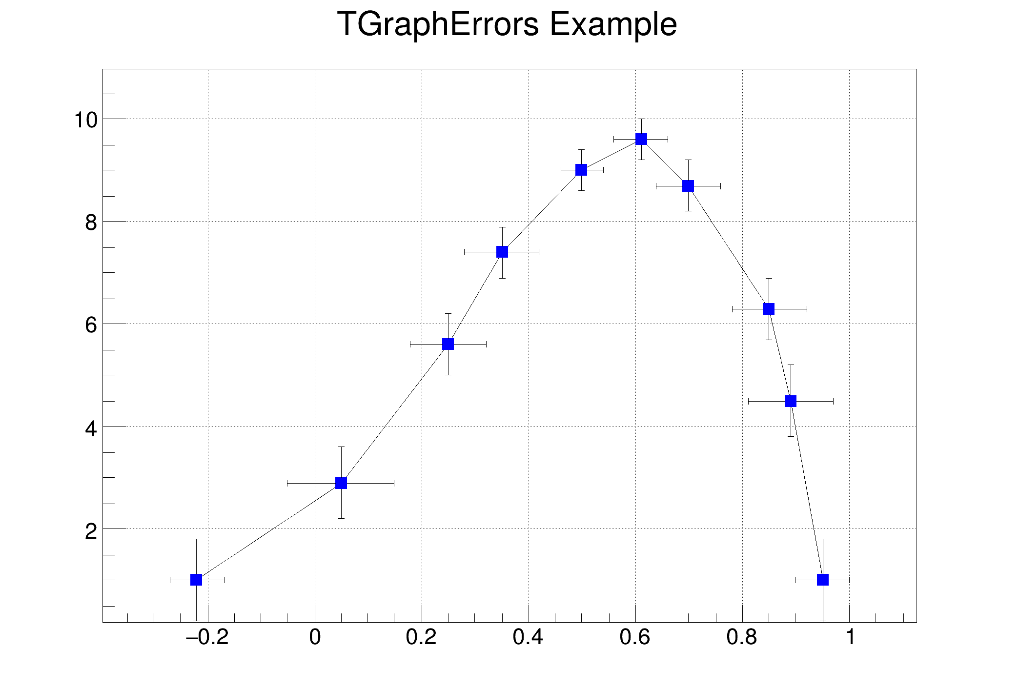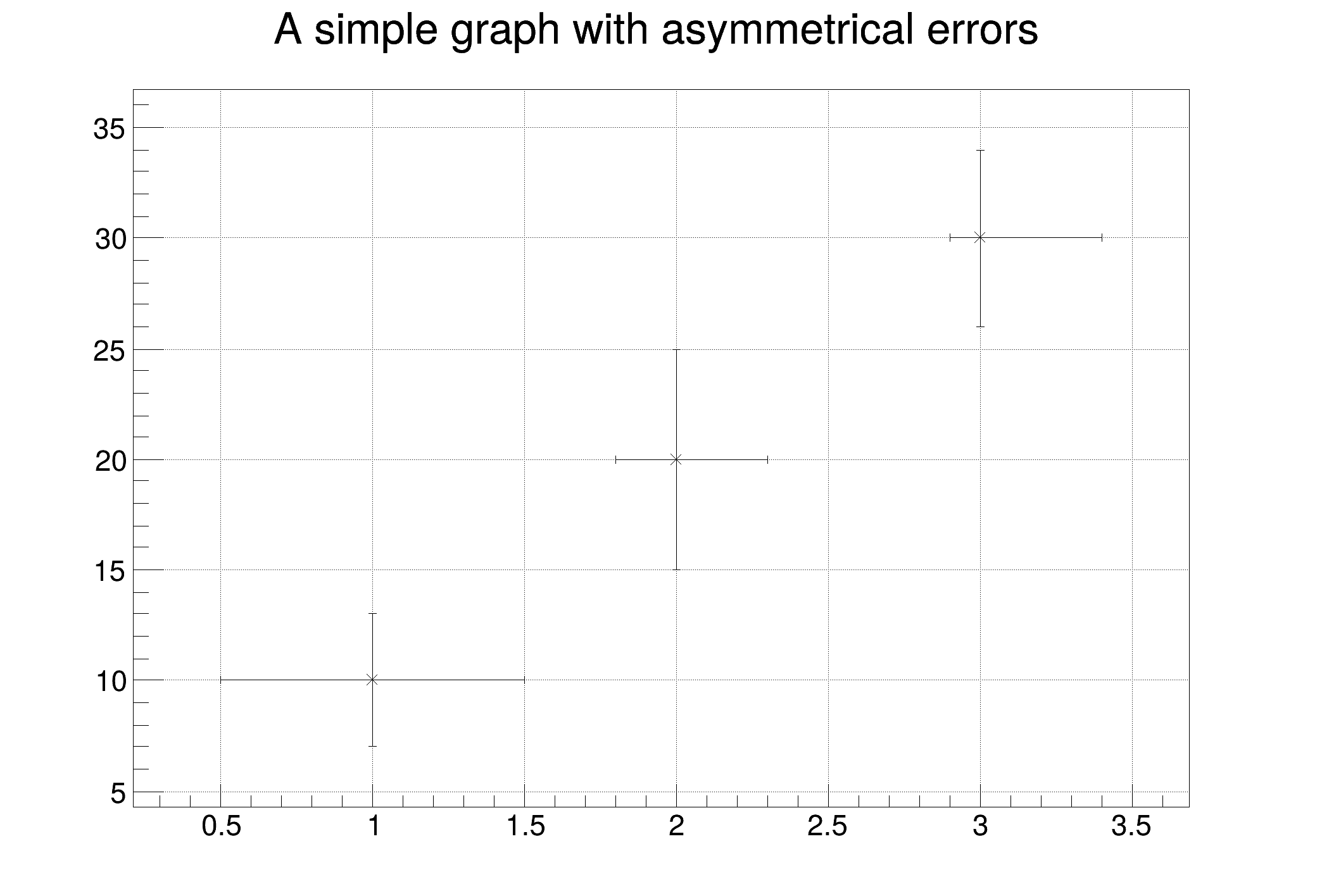 This tutorial demonstrates the use of TGraphAsymmErrors to plot a graph with asymmetrical errors on both the x and y axes. | |