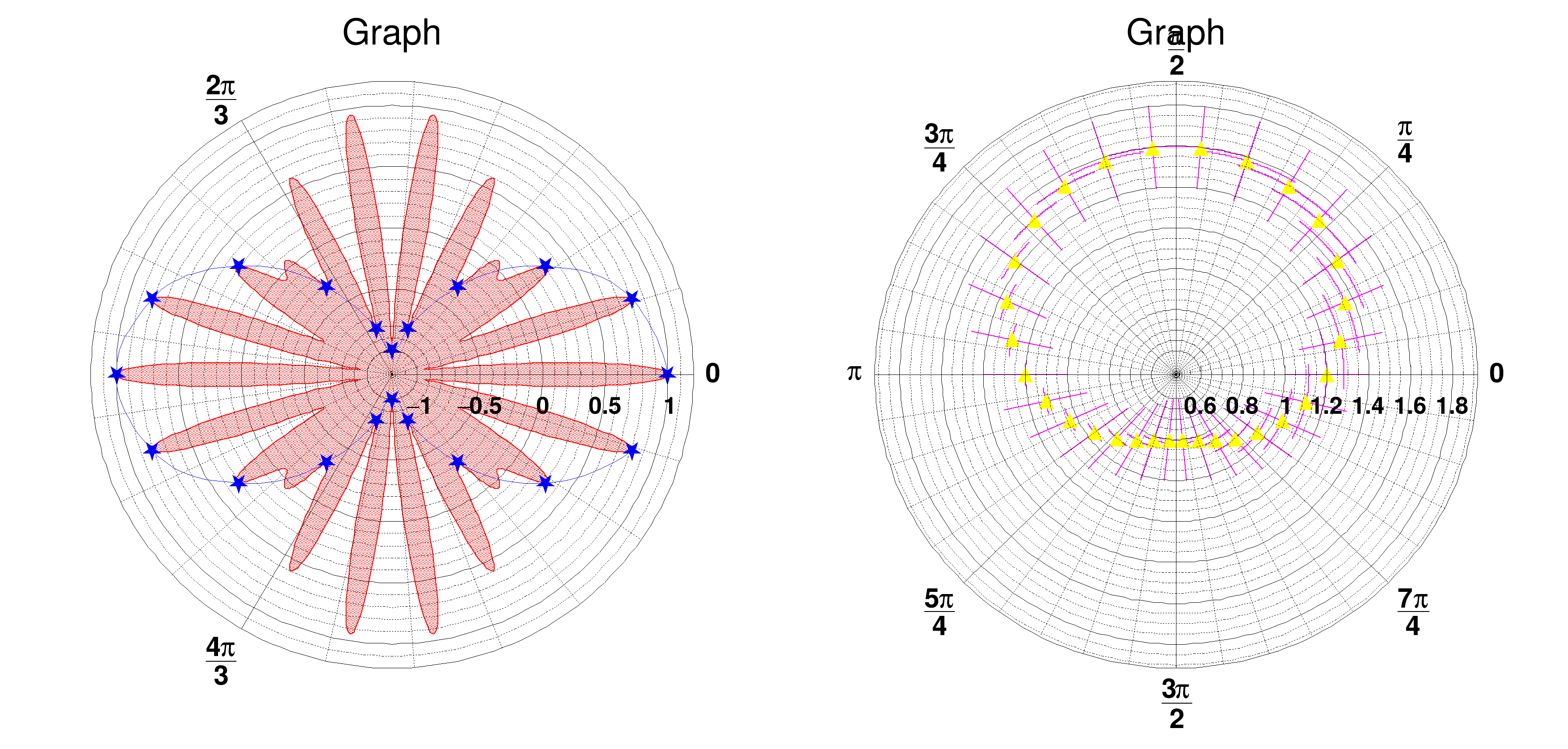 Create and draw a polar graph with errors and polar axis in radians (PI fractions). | |