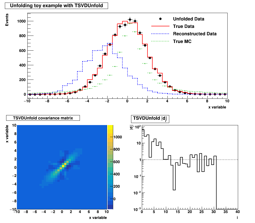 "Unfolding toy example with TSVDUnfold", 1000, 900 );