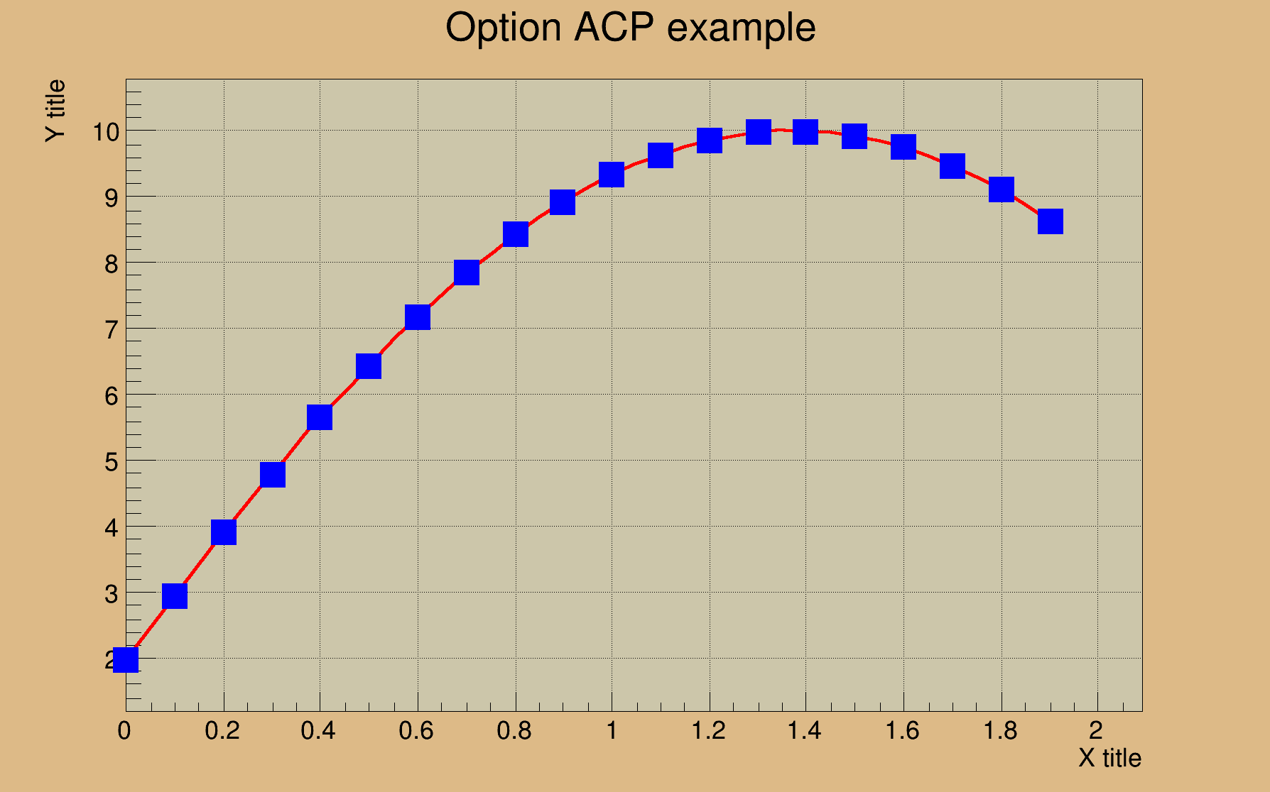 Drawing options can be combined. In the following example the graph is drawn as a smooth curve (option "C") with markers (option "P") and with axes (option "A").