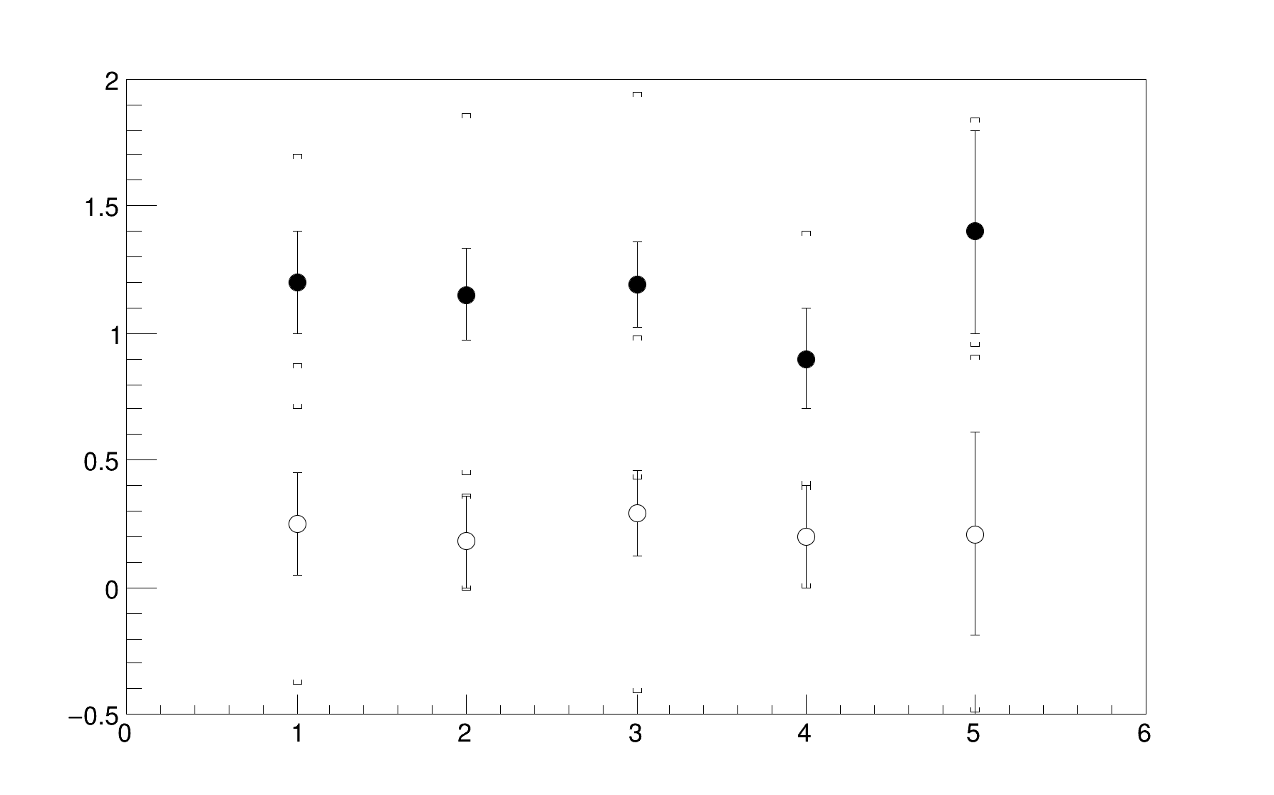 | "||" | Draw only the small vertical/horizontal lines at the ends of the error bars, without drawing the bars themselves. This option is interesting to superimpose statistical-only errors on top of a graph with statistical+systematic errors. |