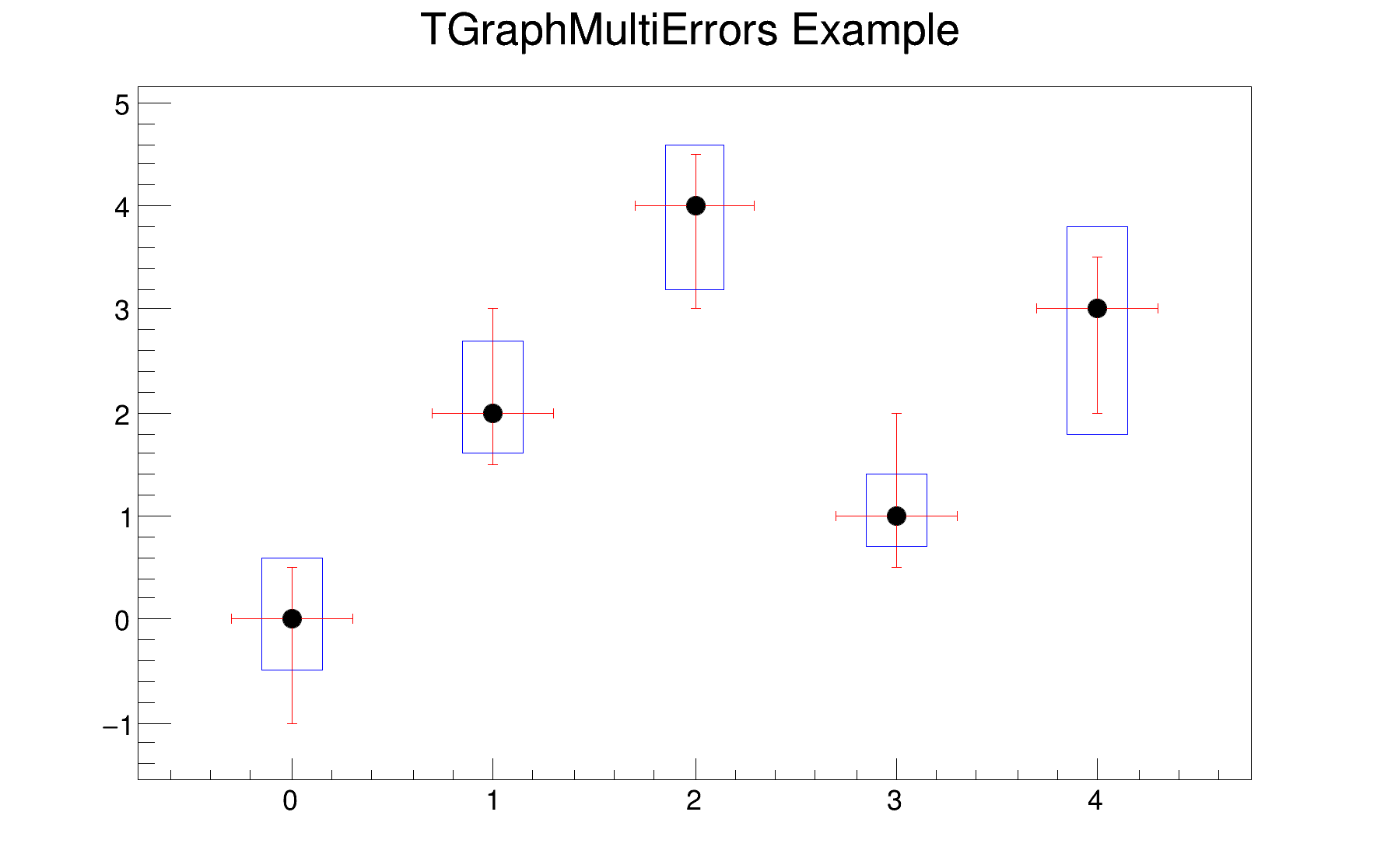 Three classes are available to handle graphs with error bars: TGraphErrors, TGraphAsymmErrors and TGraphBentErrors. The following drawing options are specific to graphs with error bars: