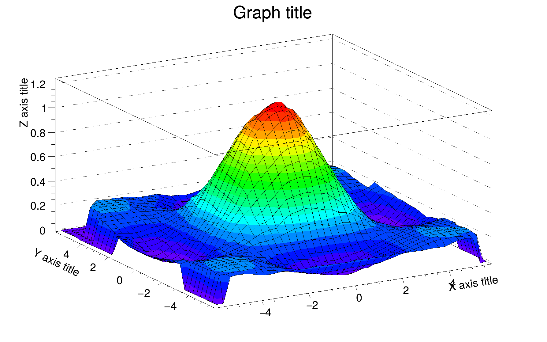When a TGraph2D is drawn with one of the 2D histogram drawing option, an intermediate 2D histogram is filled using the Delaunay triangles to interpolate the data set. The 2D histogram has equidistant bins along the X and Y directions. The number of bins along each direction can be change using SetNpx() and SetNpy(). Each bin is filled with the Z value found via a linear interpolation on the plane defined by the triangle above the (X,Y) coordinates of the bin center.