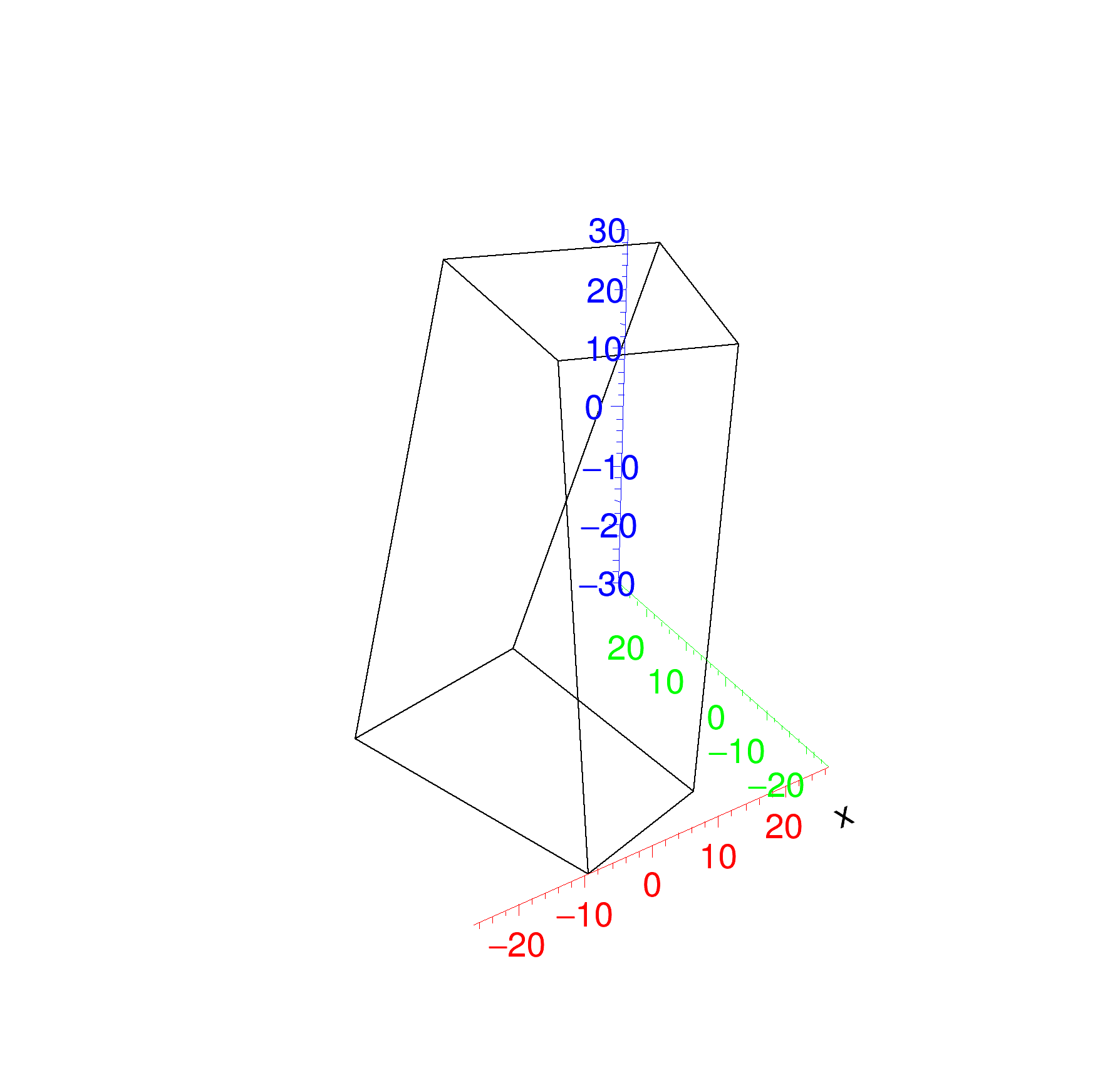 A twisted trapezoid is a general trapezoid defined in the same way but that is twisted along the Z-axis. The twist is defined as the rotation angle between the lower and the higher Z faces.