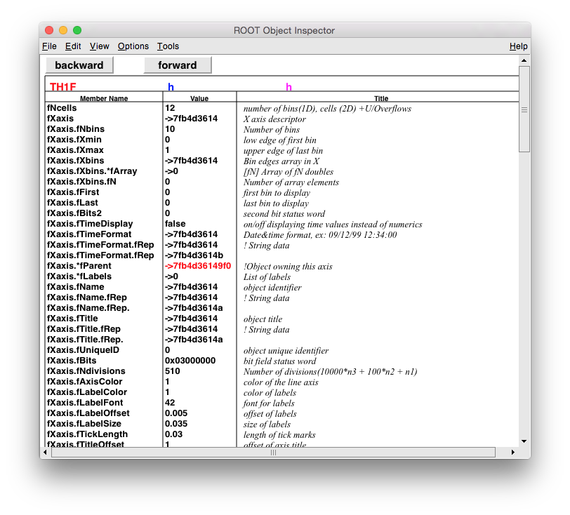 Same action as TObject::Dump but in a graphical form. In addition pointers to other objects can be followed.