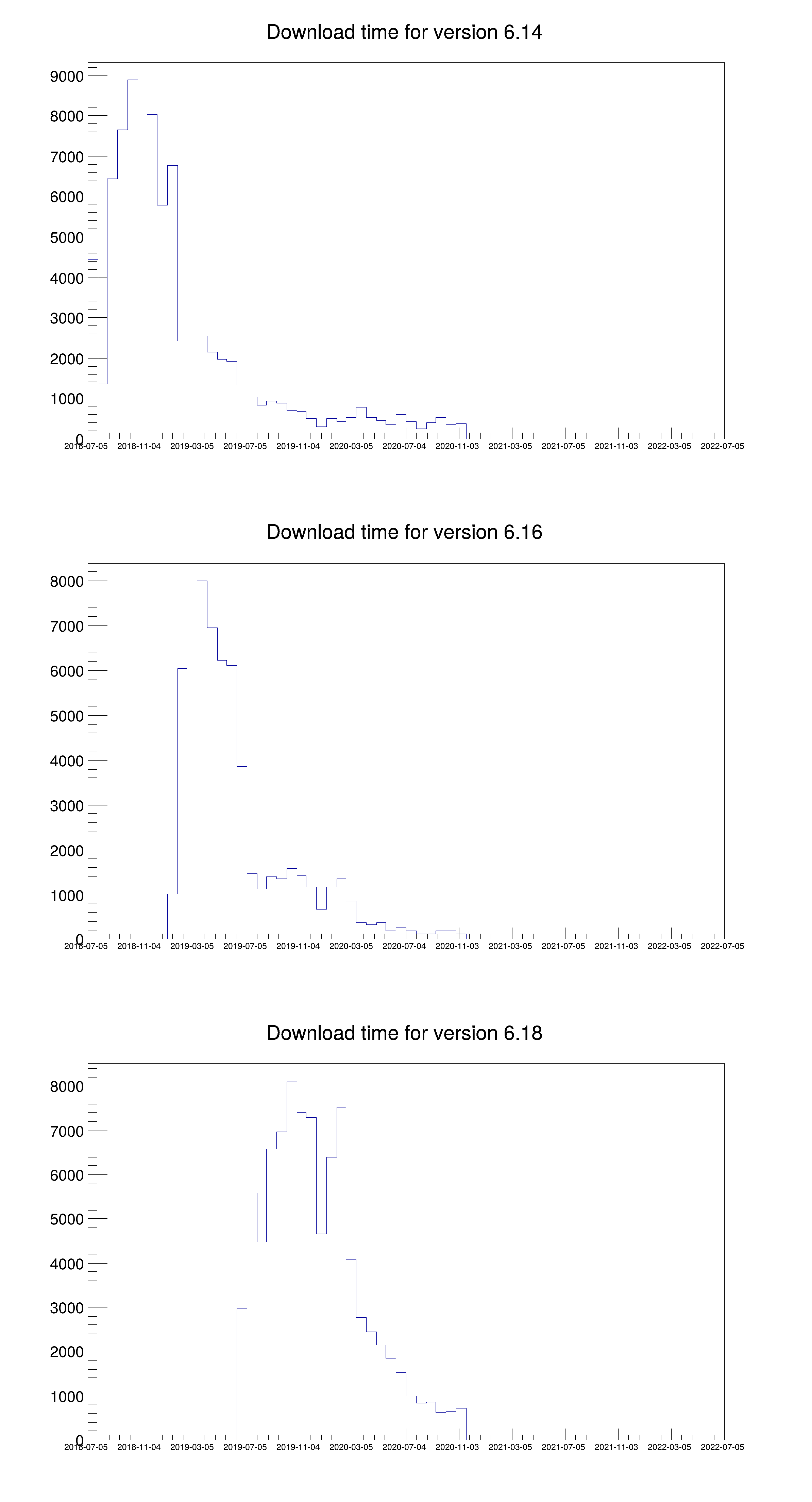 Plot the ROOT downloads based on the version reading a remote sqlite3 file.