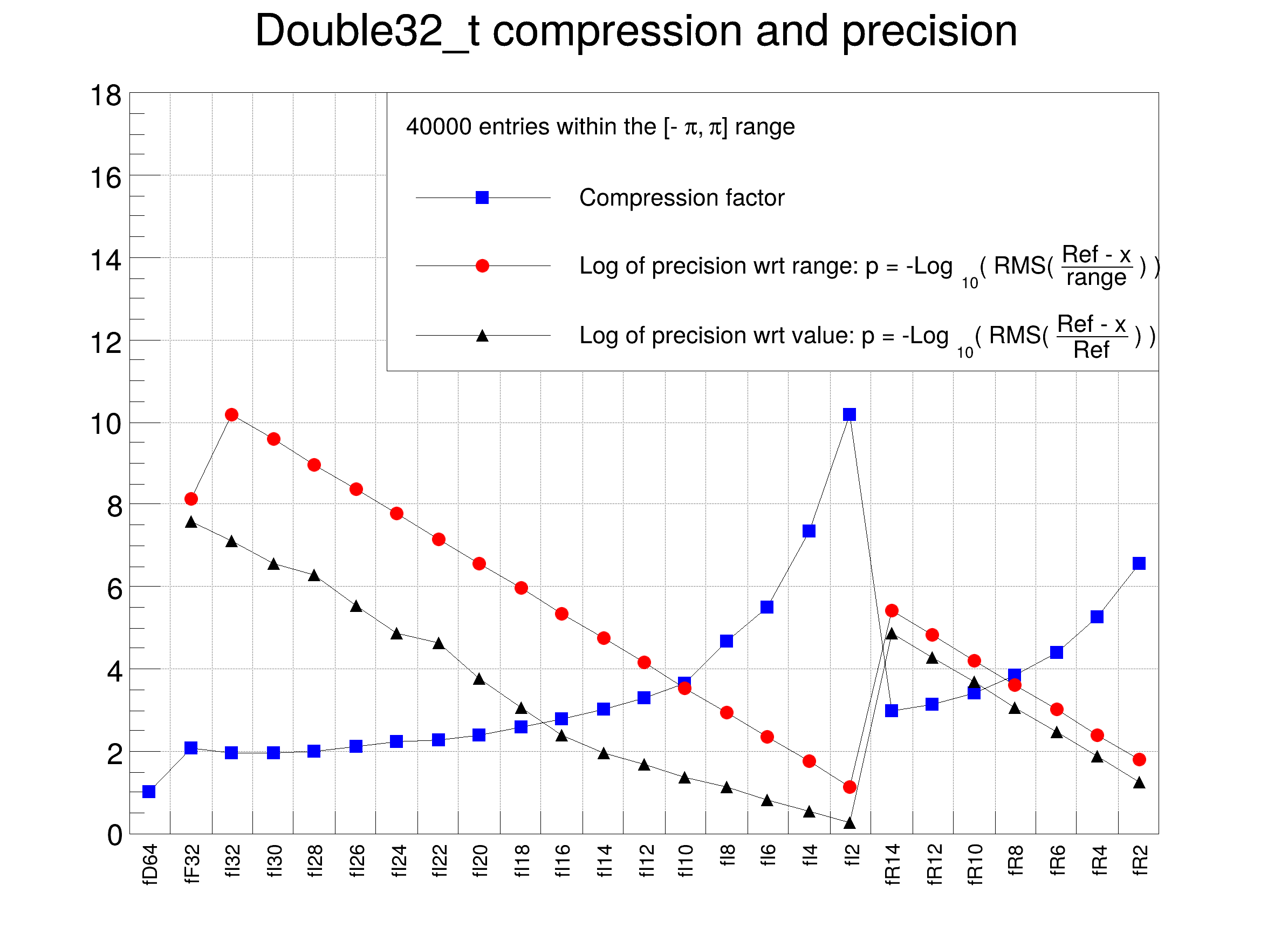 Tutorial illustrating use and precision of the Double32_t data type You should run this tutorial with ACLIC: a dictionary will be automatically created.