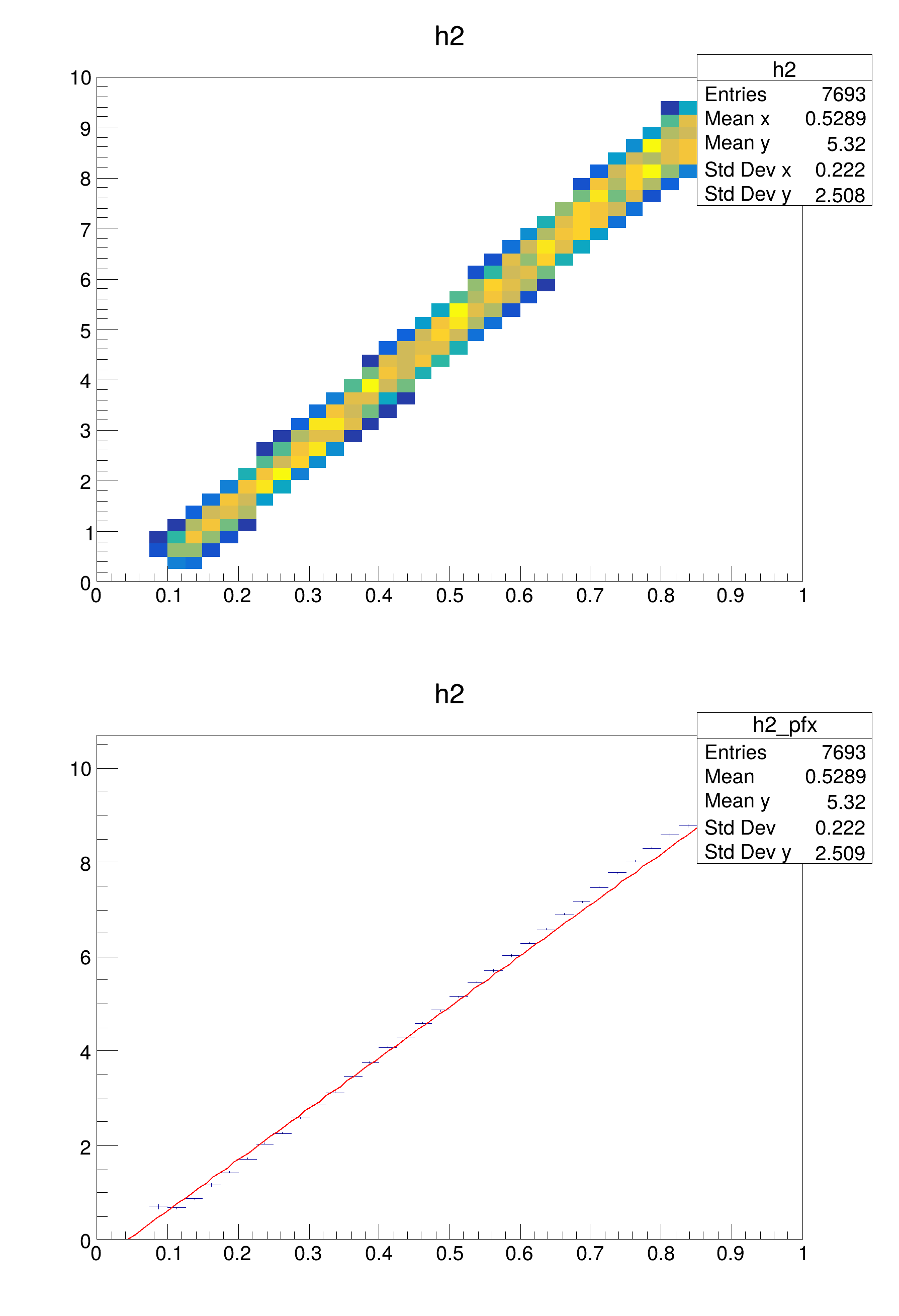 Example illustrating how to fit a 2-d histogram of type y=f(x)