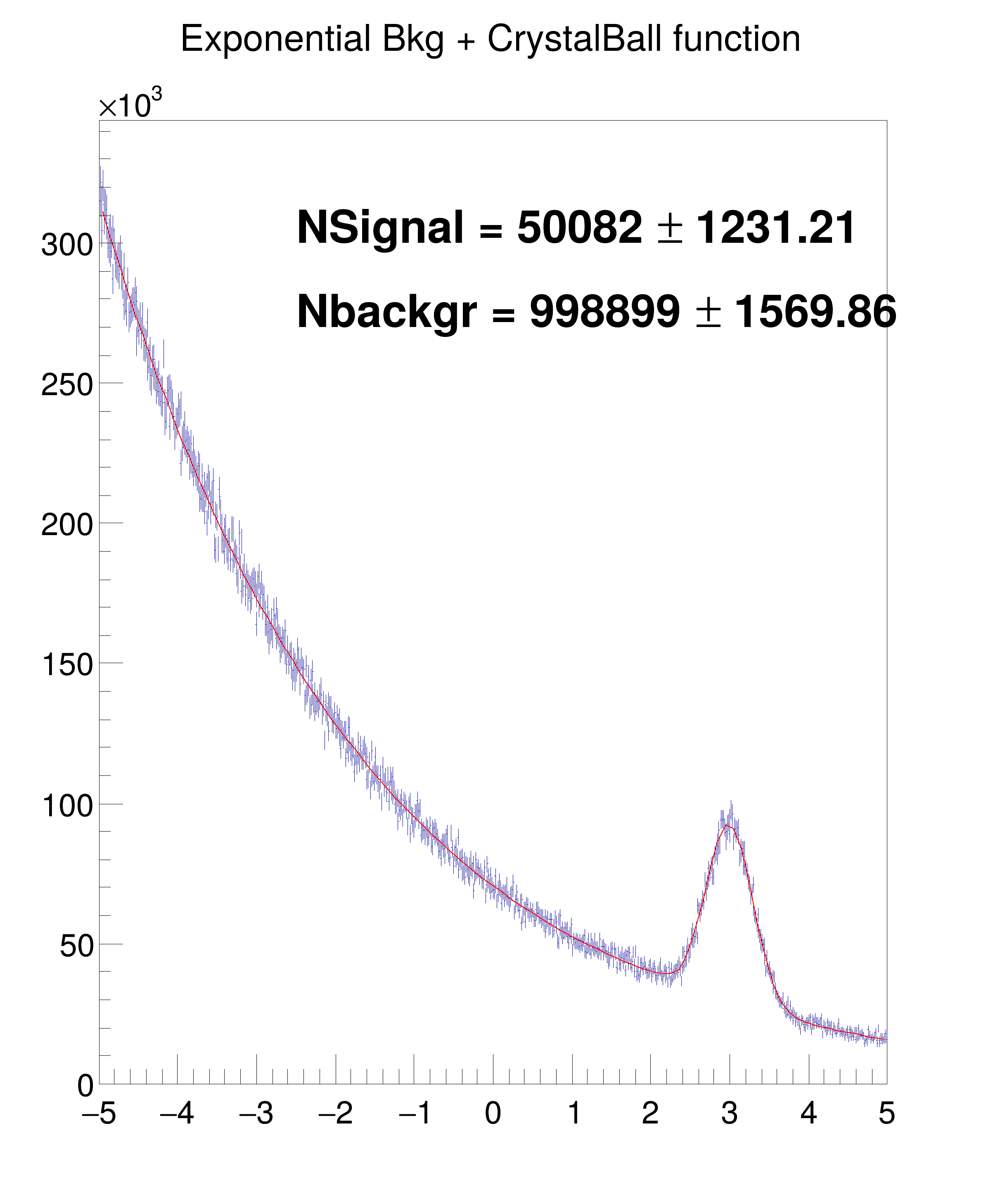 Tutorial for normalized sum of two functions Here: a background exponential and a crystalball function Parameters can be set: