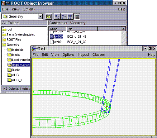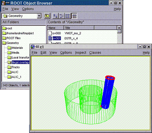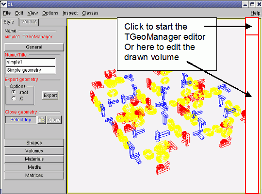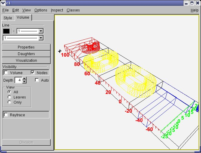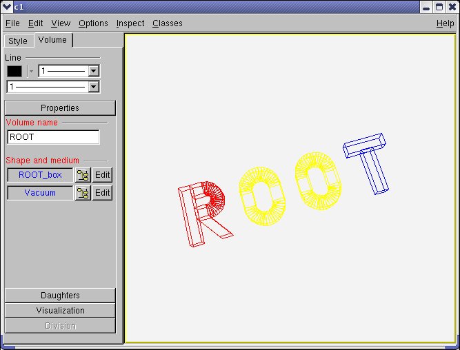 Doing this ensures that the original top-level volume of the geometry is drawn, even if another volume is currently the geometry root. OK, I suppose you already did that with your simple geometry and immediately noticed a new ROOT canvas popping-up and having some more or less strange picture inside. Here are few questions that might come: