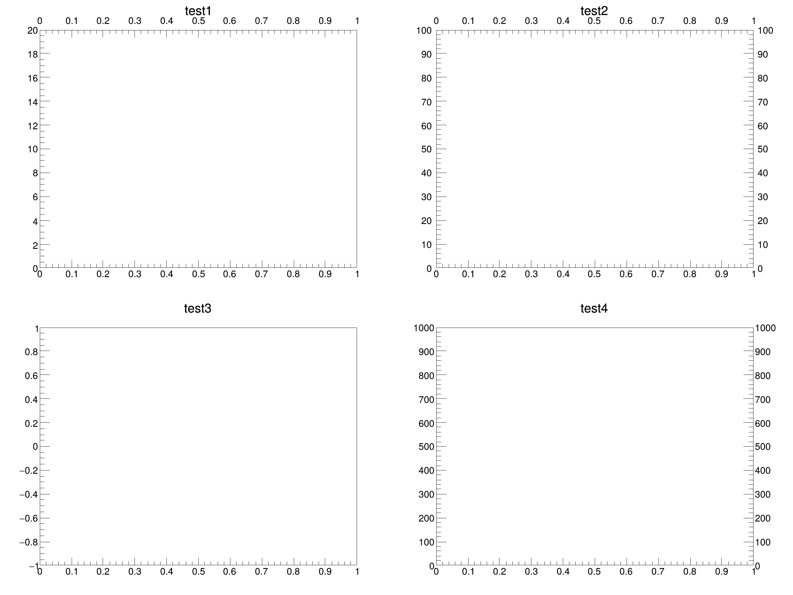 | gr103_zones.C | gr103_zones.py | Divide a canvas into adjacent subpads, with axis labels on the top and right side of the pads. |