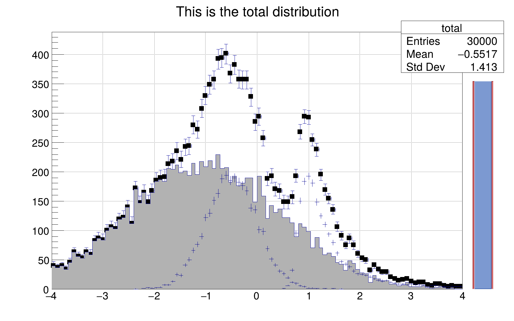 Example of stacked histograms: class THStack. | |
