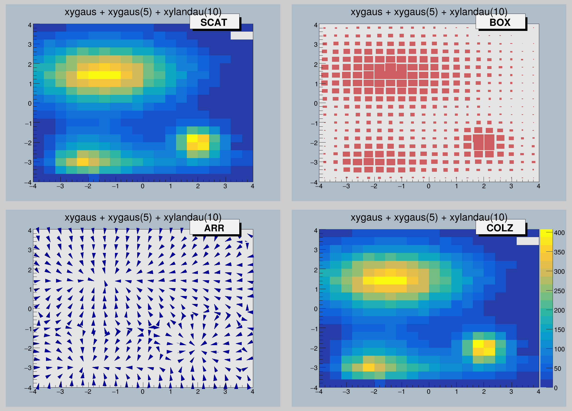 | hist020_TH2_draw.C | Display 2D histogram drawing options. |