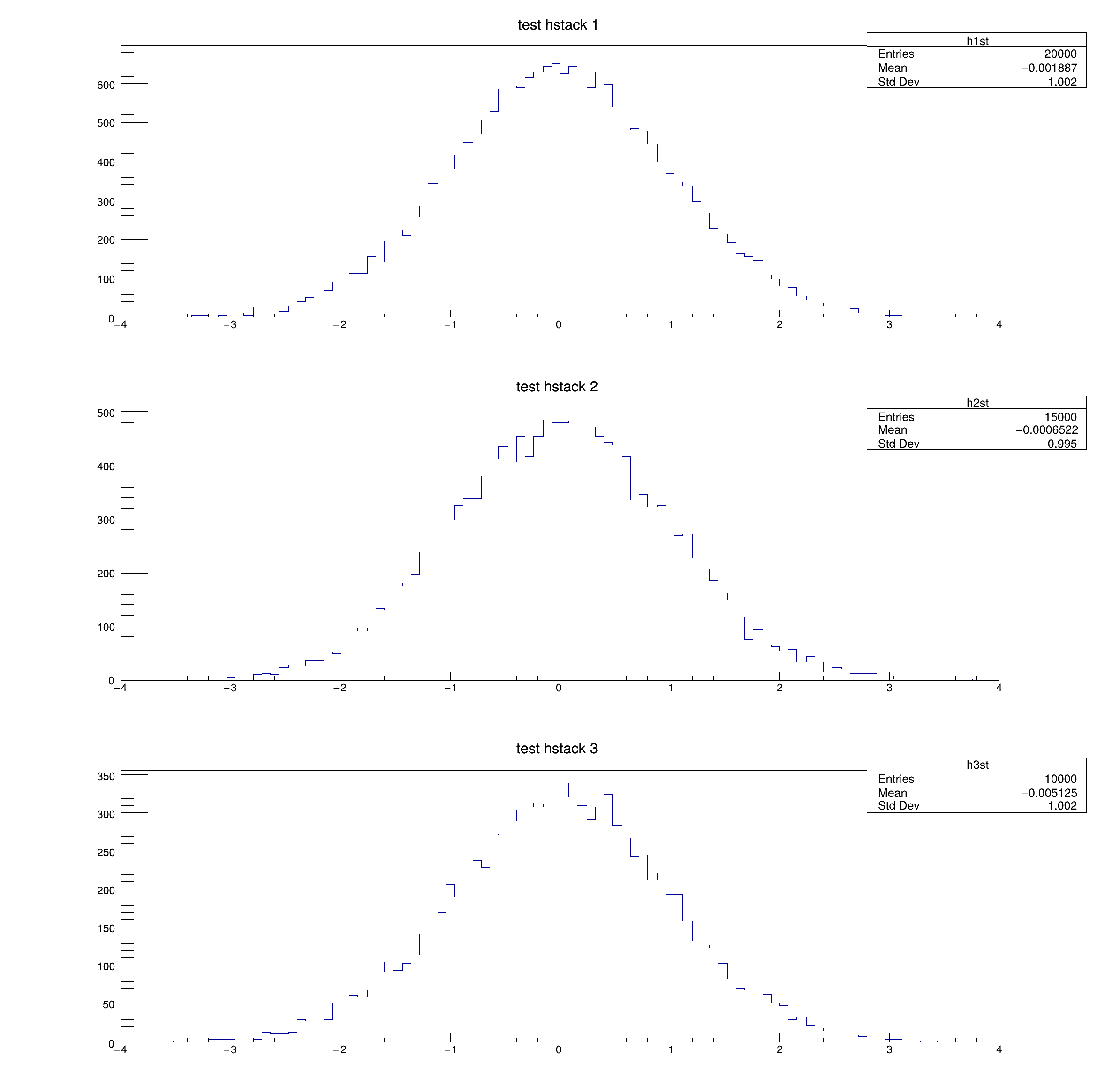 | hist023_THStack_simple.C | Stack histograms with class THStack. |