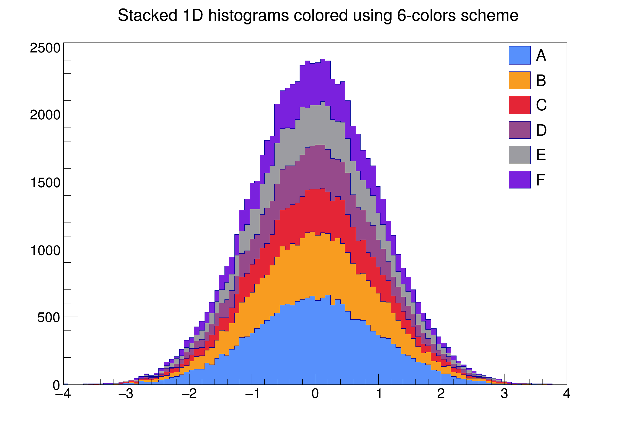 | hist026_THStack_color_scheme.C | Use accessible color schemes with THStack. |