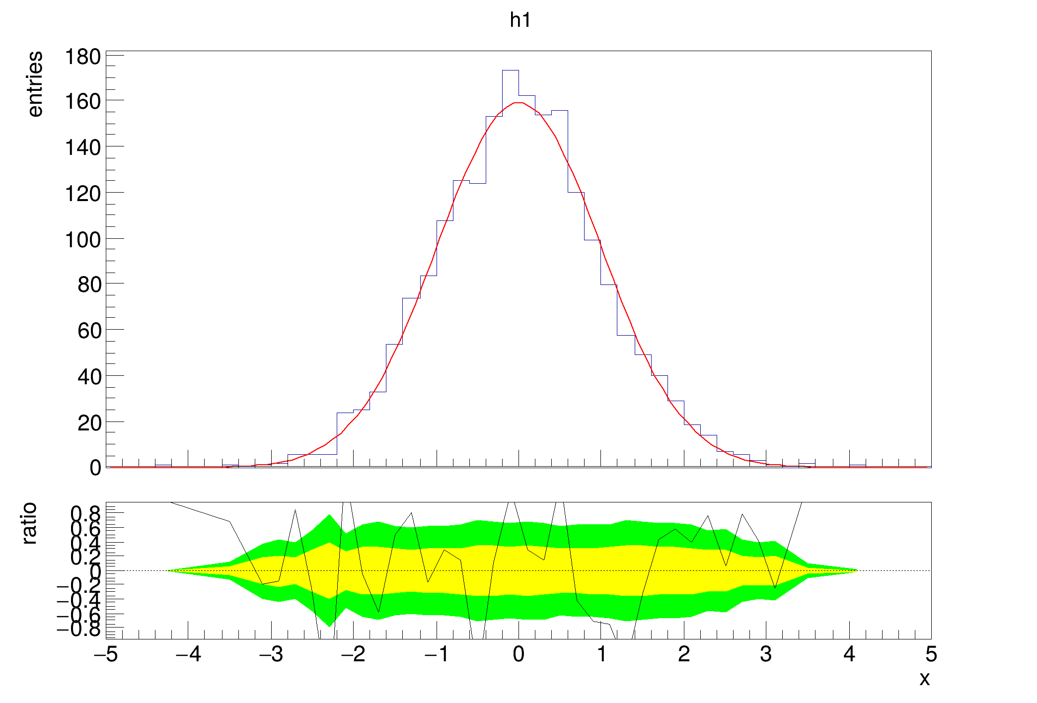 | hist029_TRatioPlot_simple.C | hist029_TRatioPlot_simple.py | Create a simple ratio plot of two histograms using the pois division option. | |