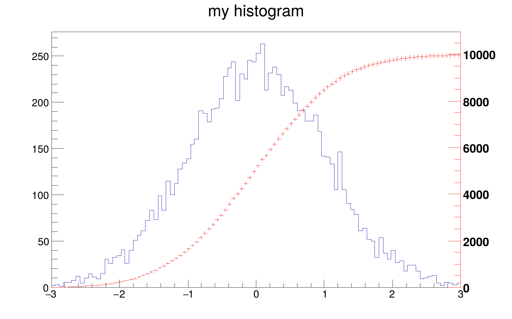 Example of macro illustrating how to superimpose two histograms with different scales in the "same" pad.