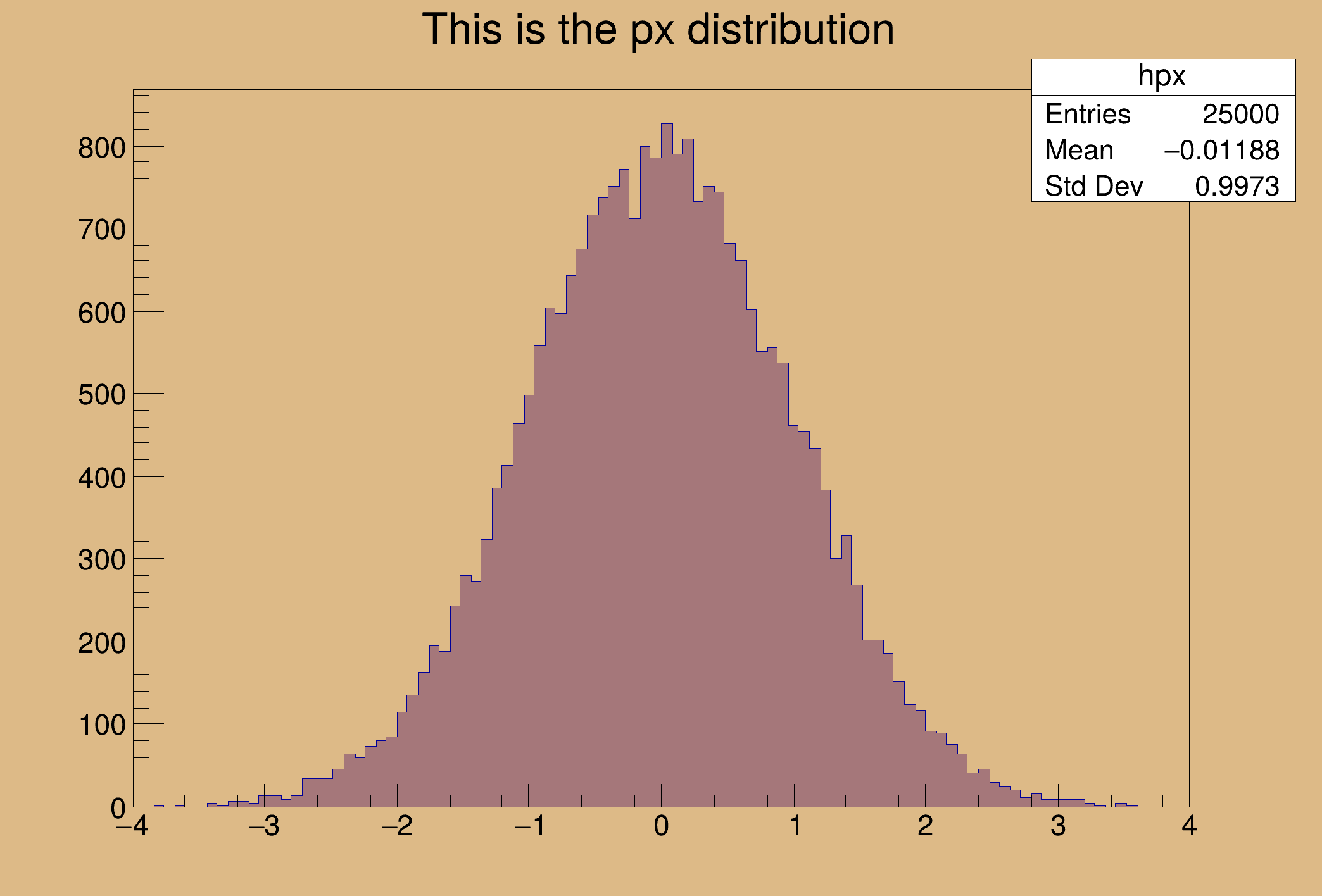 "Profile of pz versus px", 100, -4, 4, 0, 20)