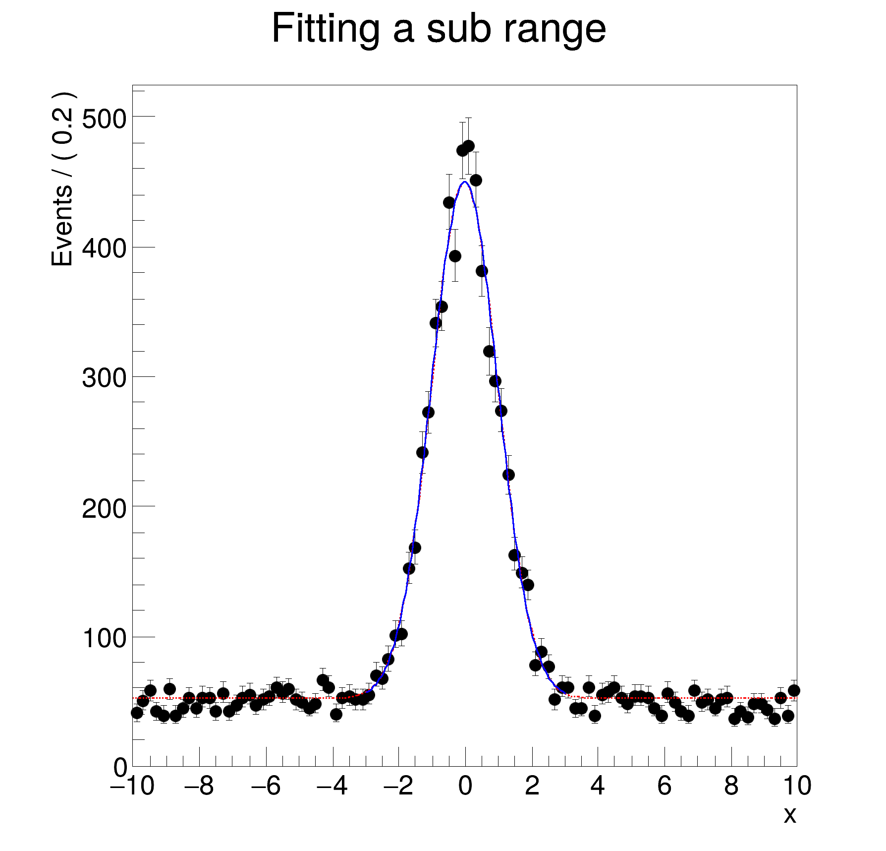 [#1] INFO:Plotting -- RooAbsPdf::plotOn(model) p.d.f was fitted in a subrange and no explicit NormRange() was specified. Plotting / normalising in fit range. To override, do one of the following