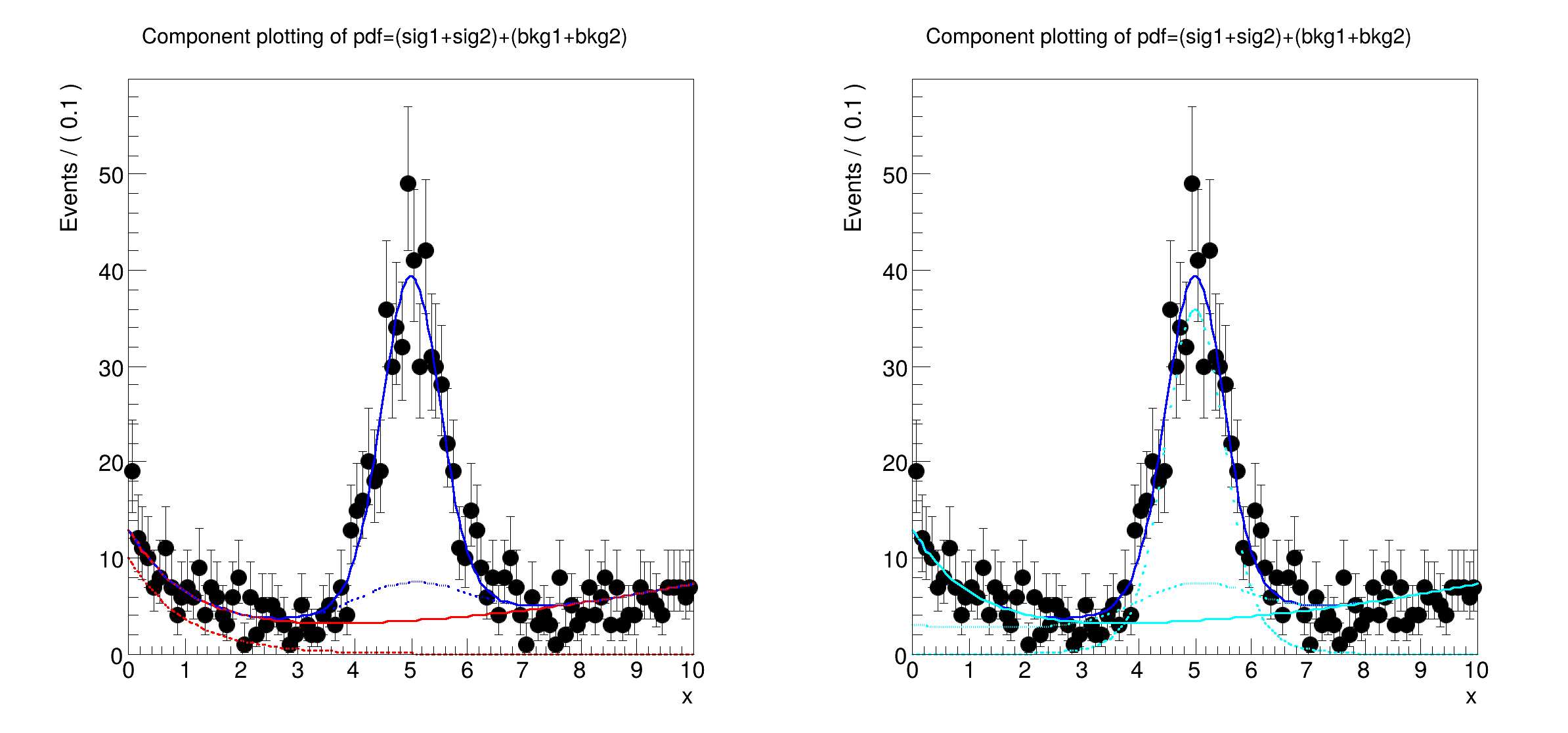 [#1] INFO:Plotting -- RooAbsPdf::plotOn(model) indirectly selected PDF components: (bkg1,bkg2)