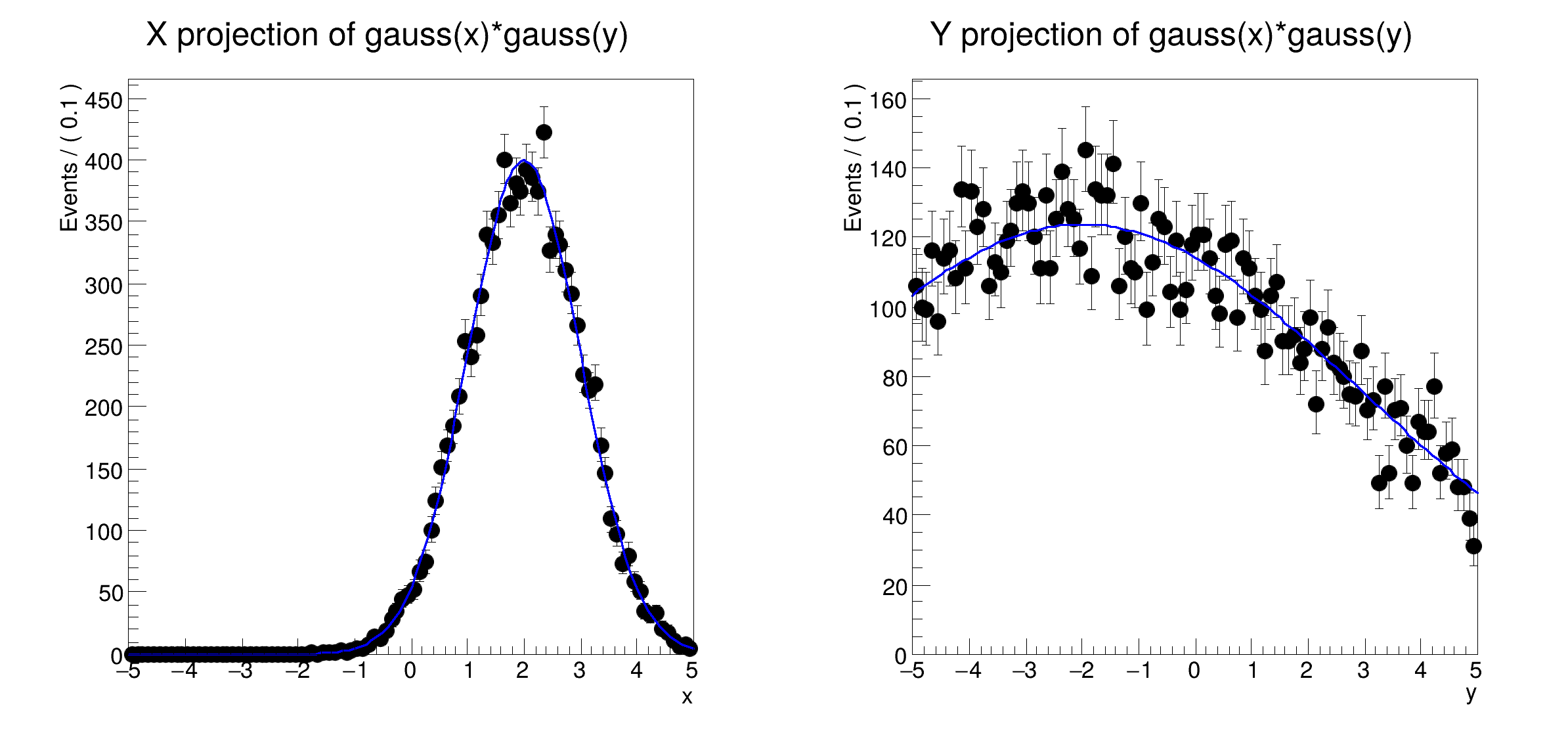 [#1] INFO:Plotting -- RooAbsReal::plotOn(gaussxy) plot on y integrates over variables (x)