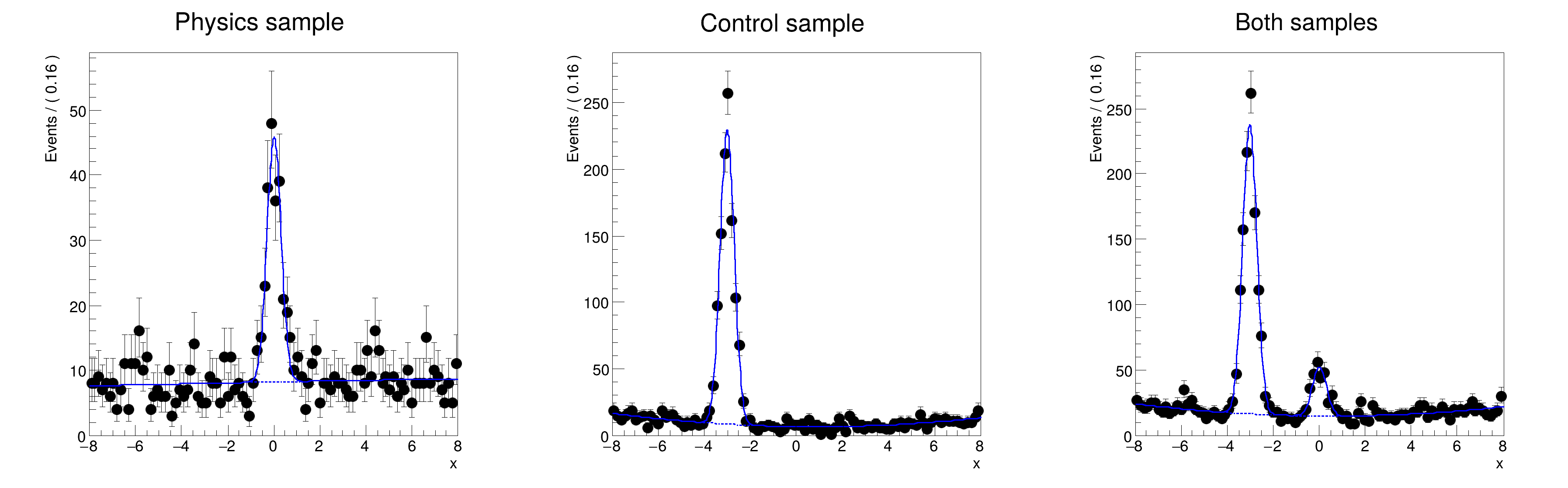 [#1] INFO:Plotting -- RooSimultaneous::plotOn(simPdf) plot on x averages with data index category (sample)