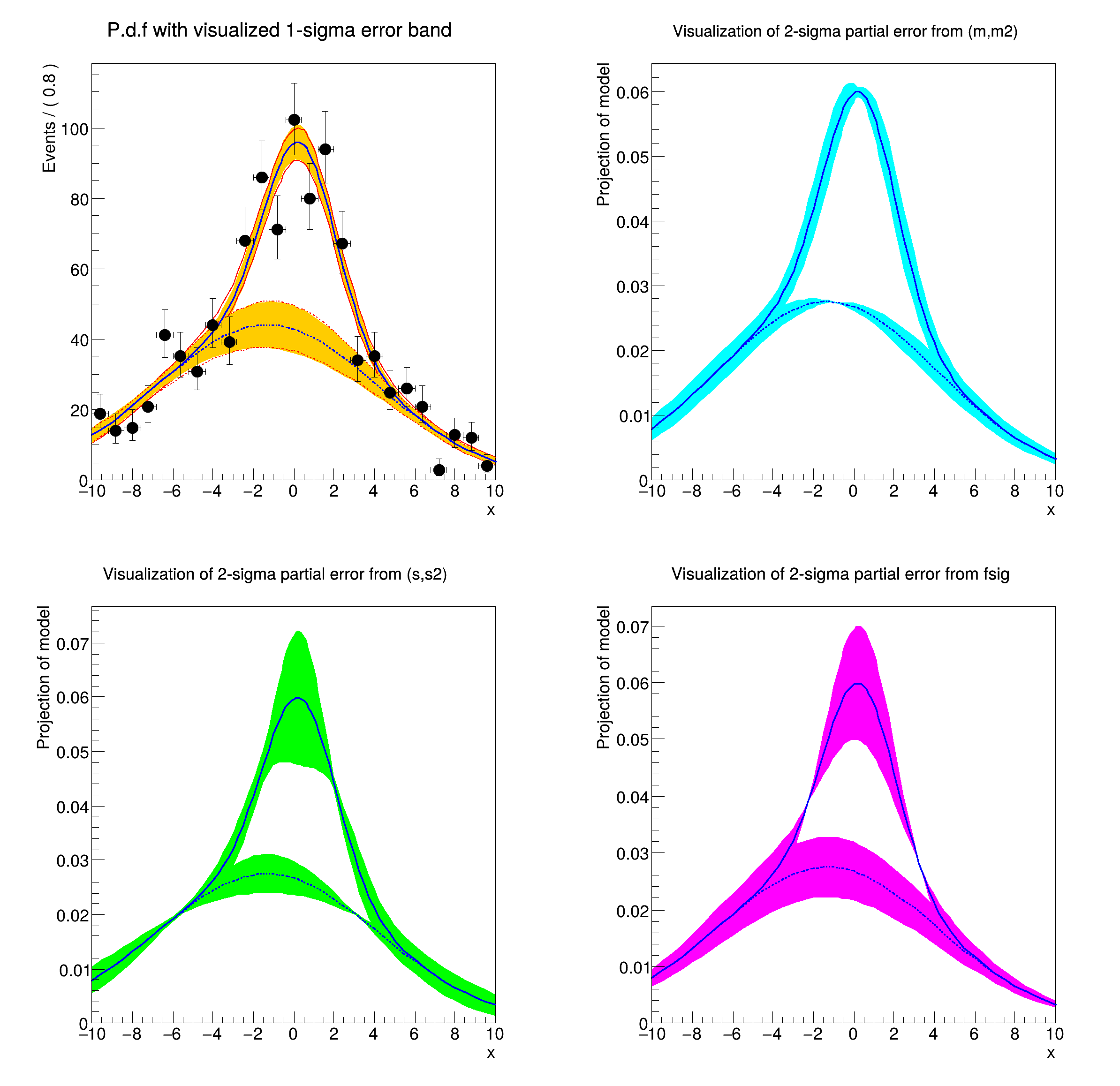[#1] INFO:Plotting -- RooAbsReal::plotOn(model) INFO: visualizing 1-sigma uncertainties in parameters (m,s,fsig,m2,s2) from fit result fitresult_model_genData using 315 samplings.