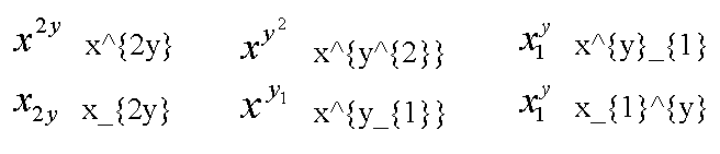 Subscripts and superscripts are made with the _ and ^ commands. These commands