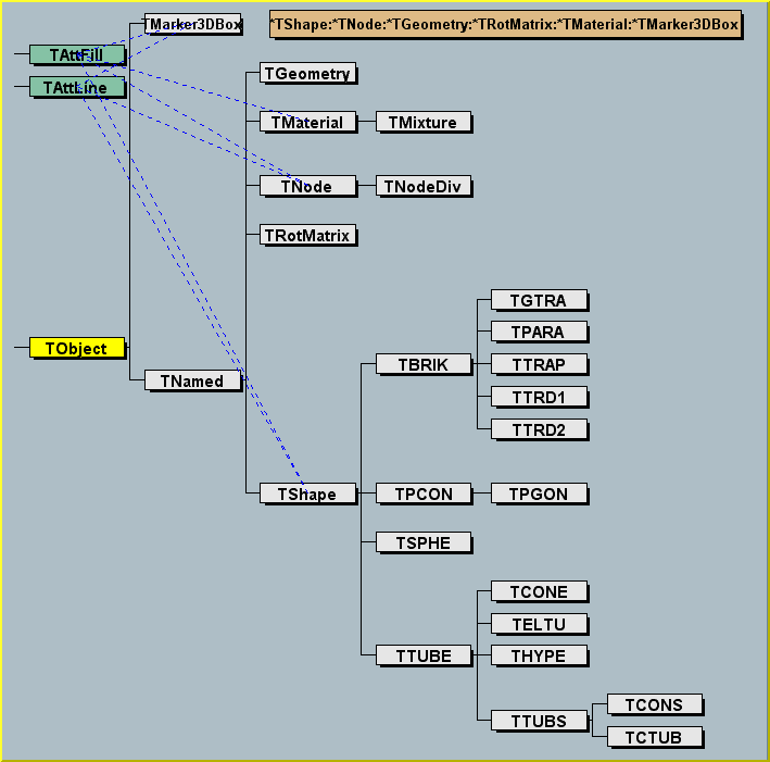 : TNamed (name, title), TAttLine(), TAttFill()