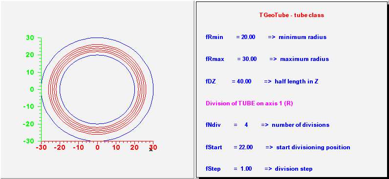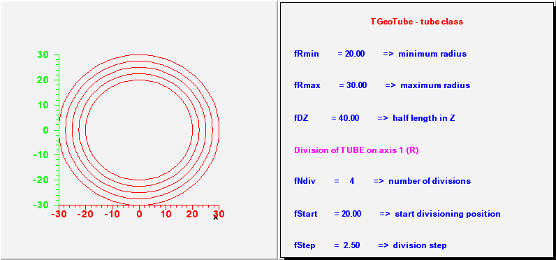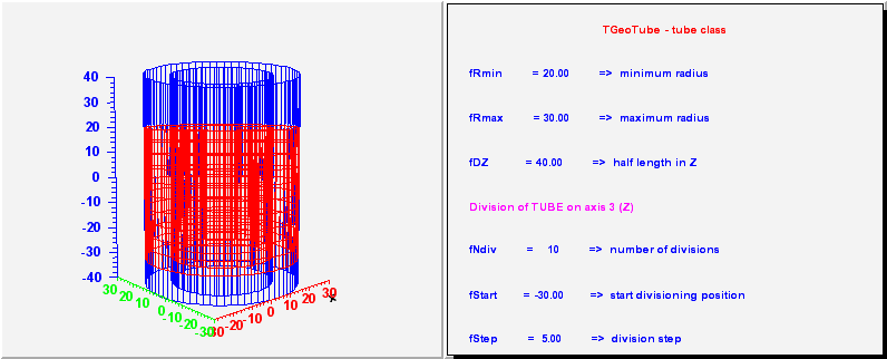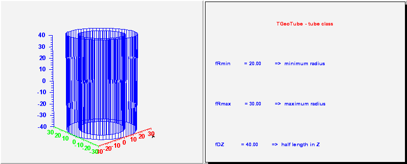 // TGeoTube - cylindrical tube class. It takes 3 parameters :