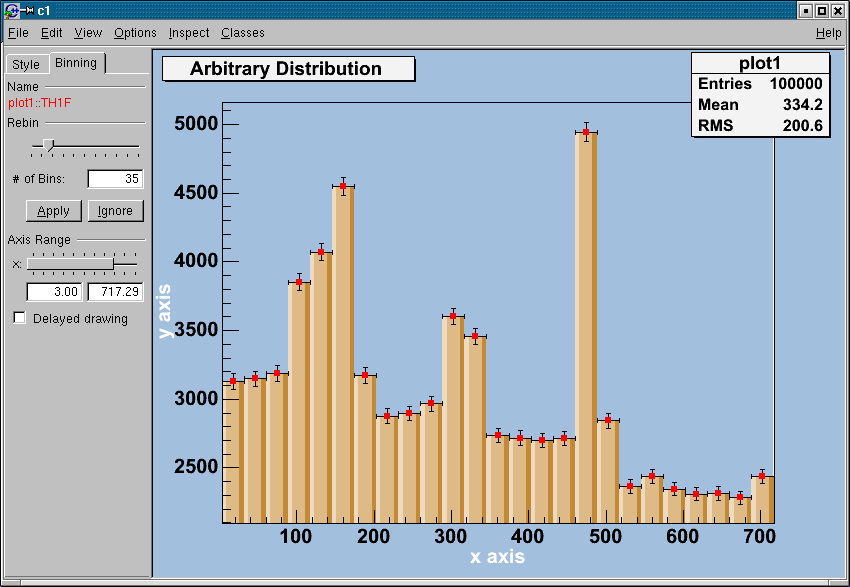 // 'Rebin': with the Slider the number of bins (shown in the field//