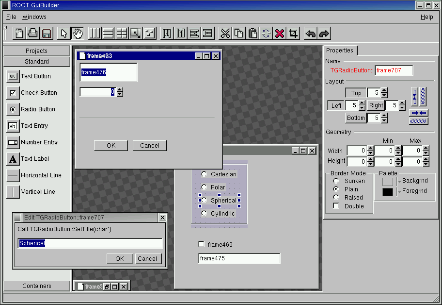 // The ROOT GUI Builder allows modifying real GUI objects.