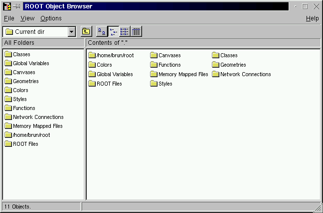 // on the left side of the window all browsable ROOT classes. Selecting //