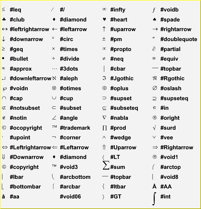 // + and > , are produced by typing the corresponding keyboard character. Others