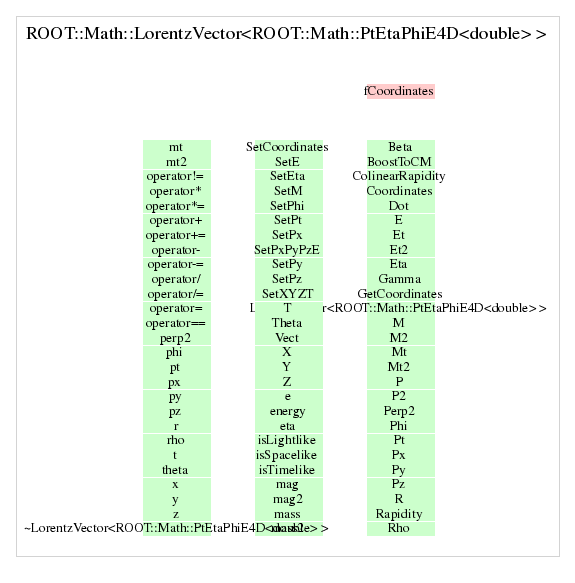 ROOT::Math::LorentzVector<ROOT::Math::PtEtaPhiE4D<double> > | LorentzVector<ROOT::Math::PtEtaPhiE4D<double> >() |