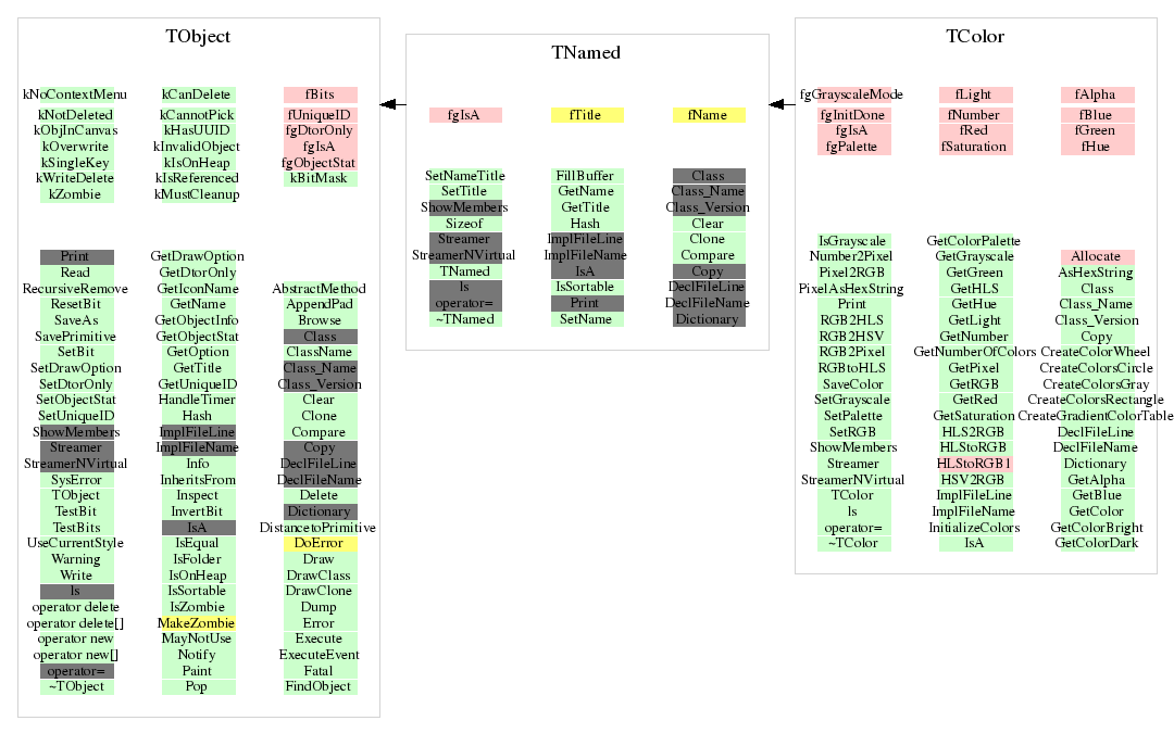 Color defined by RGB or HLS. At initialization time, a table of colors is generated. This linked list can be accessed from the TROOT object via the color index, eg