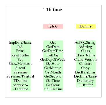 TDatime This class stores the date and time with a precision of one second in an unsigned 32 bit word (e.g. 950130 124559). The date is stored with the origin being the 1st january 1995. This class has no support for time zones. The time is assumed to be in the local time of the machine where the object was created. As a result, TDatime objects are not portable between machines operating in different time zones and unsuitable for storing the date/time of data taking events and the like. If absolute time is required, use TTimeStamp.