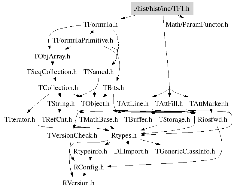 TF1 objects can reference other TF1 objects (thanks John Odonnell) of type A or B defined above. This excludes CINT interpreted functions and compiled functions. However, there is a restriction. A function cannot reference a basic function if the basic function is a polynomial polN.