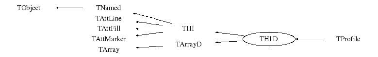 TH1 ^ | | | ----------------------------------------------------------- | | | | | | | | | TH1C TH1S TH1I TH1F TH1D | | | | | | | TH2 TProfile | | | | | ---------------------------------- | | | | | | | TH2C TH2S TH2I TH2F TH2D | | TH3 | | TProfile2D | ------------------------------------- | | | | | TH3C TH3S TH3I TH3F TH3D The TH*C classes also inherit from the array class TArrayC. The TH*S classes also inherit from the array class TArrayS. The TH*I classes also inherit from the array class TArrayI. The TH*F classes also inherit from the array class TArrayF. The TH*D classes also inherit from the array class TArrayD.