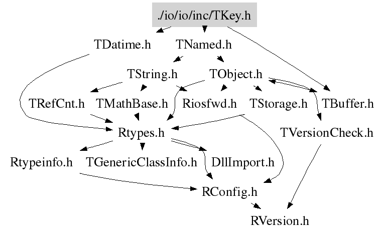 The TKey class includes functions to book space on a file, to create I/O buffers, to fill these buffers, to compress/uncompress data buffers. Before saving (making persistent) an object on a file, a key must be created. The key structure contains all the information to uniquely identify a persistent object on a file. fNbytes = number of bytes for the compressed object+key fObjlen = Length of uncompressed object fDatime = Date/Time when the object was written fKeylen = number of bytes for the key structure fCycle = cycle number of the object fSeekKey = Address of the object on file (points to fNbytes) This is a redundant information used to cross-check the data base integrity. fSeekPdir = Pointer to the directory supporting this object fClassName = Object class name fName = name of the object fTitle = title of the object In the 16 highest bit of fSeekPdir is encoded a pid offset. This offset is to be added to the pid index stored in the TRef object and the referenced TObject. The TKey class is used by ROOT to: - to write an object in the Current Directory - to write a new ntuple buffer The structure of a file is shown in TFile::TFile. The structure of a directory is shown in TDirectoryFile ctor. The TKey class is used by the TBasket class. See also TTree.