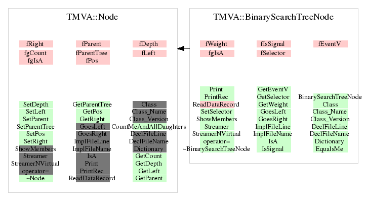 BinarySearchTreeNode Node for the BinarySearch or Decision Trees. For the binary search tree, it basically consists of the EVENT, and pointers to the parent and the daughters. In case of the Decision Tree, it specifies parent and daughters, as well as "which variable is used" in the selection of this node, including the respective cut value.