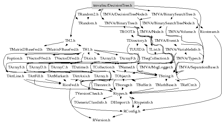 Implementation of a Decision Tree In a decision tree successive decision nodes are used to categorize the events out of the sample as either signal or background. Each node uses only a single discriminating variable to decide if the event is signal-like ("goes right") or background-like ("goes left"). This forms a tree like structure with "baskets" at the end (leave nodes), and an event is classified as either signal or background according to whether the basket where it ends up has been classified signal or background during the training. Training of a decision tree is the process to define the "cut criteria" for each node. The training starts with the root node. Here one takes the full training event sample and selects the variable and corresponding cut value that gives the best separation between signal and background at this stage. Using this cut criterion, the sample is then divided into two subsamples, a signal-like (right) and a background-like (left) sample. Two new nodes are then created for each of the two sub-samples and they are constructed using the same mechanism as described for the root node. The devision is stopped once a certain node has reached either a minimum number of events, or a minimum or maximum signal purity. These leave nodes are then called "signal" or "background" if they contain more signal respective background events from the training sample.