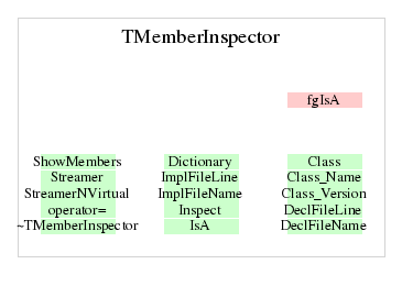 TMemberInspector Abstract base class for accessing the datamembers of a class. Classes derived from this class can be given as argument to the ShowMembers() methods of ROOT classes. This feature facilitates the writing of class browsers and inspectors.