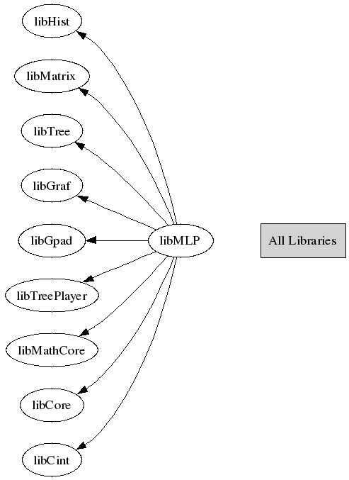 TMLP is build from 3 classes: TNeuron, TSynapse and TMultiLayerPerceptron. Only TMultiLayerPerceptron should be used explicitely by the user.