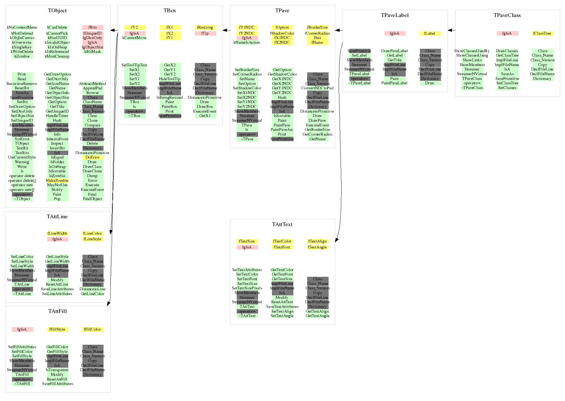 A TPaveClass object is used by the TClassTree to represent a class.
