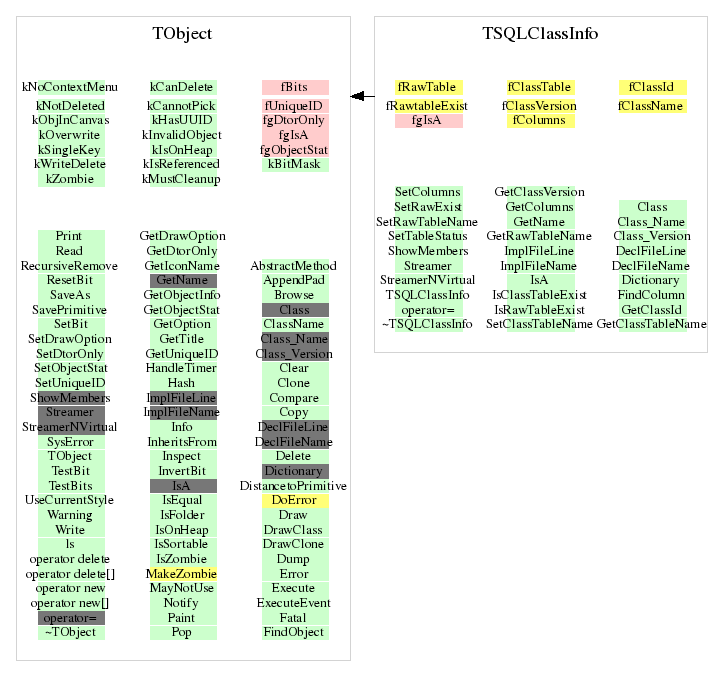 virtual Bool_tTObject::InheritsFrom(const TClass* cl) const