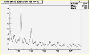 TH1F *h = new TH1F("h","High resolution peak searching, number of iterations = 3",nbins,xmin,xmax);