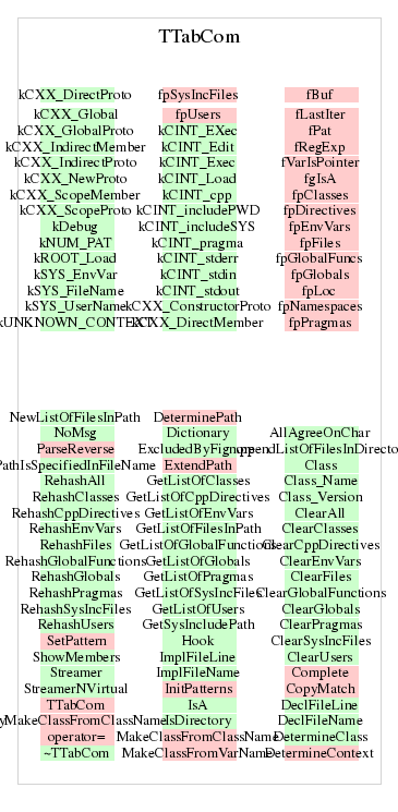 TTabCom This class performs basic tab completion. You should be able to hit [TAB] to complete a partially typed: username nvironment variabl preprocessor directive pragma filename (with a context-sensitive path) public member function or data member (including base classes) global variable, function, or class name Also, something like someObject->Func([TAB] someObject.Func([TAB] someClass::Func([TAB] someClass var([TAB] new someClass([TAB] will print a list of prototypes for the indicated method or constructor. Current limitations and bugs: 1. you can only use one member access operator at a time. eg, this will work: gROOT->GetListOfG[TAB] but this will not: gROOT->GetListOfGlobals()->Conta[TAB] 2. nothing is guaranteed to work on windows or VMS (for one thing, /bin/env and /etc/passwd are hardcoded) 3. CINT shortcut #2 is deliberately not supported. (using "operator.()" instead of "operator->()") 4. most identifiers (including C++ identifiers, usernames, environment variables, etc) are restriceted to this character set: [_a-zA-Z0-9] therefore, you won't be able to complete things like operator new operator+ etc 5. ~whatever[TAB] always tries to complete a username. use whitespace (~ whatever[TAB]) if you want to complete a global identifier. 6. CINT shortcut #3 is not supported when trying to complete the name of a global object. (it is supported when trying to complete a member of a global object) 7. the list of #pragma's is hardcoded (ie not obtained from the interpreter at runtime) ==> user-defined #pragma's will not be recognized 8. the system include directories are also hardcoded because i don't know how to get them from the interpreter. fons, maybe they should be #ifdef'd for the different sytems? 9. the TabCom.FileIgnore resource is always applied, even if you are not trying to complete a filename. 10. anything in quotes is assumed to be a filename so (among other things) you can't complete a quoted class name: eg, TClass class1( "TDict[TAB] // his won't work... looks for a file in pwd starting with TDic 11. the prototypes tend to omit the word "const" a lot. this is a problem with ROOT or CINT. 12. when listing ambiguous matches, only one column is used, even if there are many completions. 13. anonymous objects are not currently identified so, for example, root> printf( TString([TAB gives an error message instead of listing TString's constructors. (this could be fixed) 14. the routine that adds the "appendage" isn't smart enough to know if it's already there: root> TCanvas::Update() press [TAB] here ^ root> TCanvas::Update()() (this could be fixed) 15. the appendage is only applied if there is exactly 1 match. eg, this root> G__at[TAB] root> G__ateval happens instead of this root> G__at[TAB] root> G__ateval( because there are several overloaded versions of G__ateval(). (this could be fixed)
